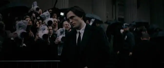 Постановочные кадры и реквизит также преподносят несколько интересных аллюзий на предыдущие экранизации. Масштабные темные улицы и дождевая атмосфера вызывают ассоциации с готическим видением Тима Бертона, в то время как реализм и «грязность» бытия ближе к трилогии Нолана. При этом Ривз сознательно избегает прямого заимствования музыкальных тем: партитура Майкла Джаккино создает новый звуковой язык фильма, но в отдельных моментах можно уловить кинематографические ходы, характерные для предыдущих саундтреков о Бэтмене, — это скорее дань резонансной мелодической памяти, чем буквальное цитирование.