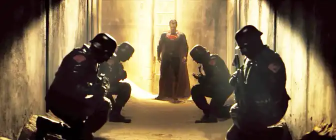 Центральный драматический приём заключается в противопоставлении двух типов ответов на угрозу: методики страха и методы доверия. Брюс Уэйн воплощает контроль через страх, полагается на тактику превентивного насилия, чтобы обеспечить безопасность Готэма. Он видит в сверхсуществе непредсказуемую угрозу, которую необходимо подавить ещё до того, как она проявит себя. Кларк Кент, напротив, действует исходя из идеалов ответственности и самопожертвования, стремясь сохранить гуманность и веру в людей. Этот конфликт иллюстрирует важность баланса между силой и моралью: никто из персонажей не является безупречным, и именно на перекрёстке их несовершенств рождается драматическая напряжённость фильма.